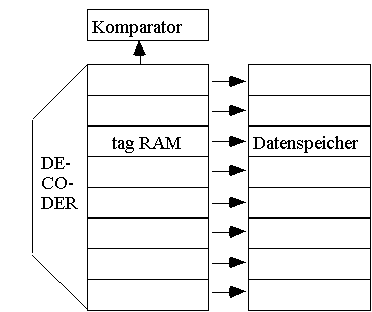 direct mapped cache: nur die höchsten Adreßbits werden verglichen.